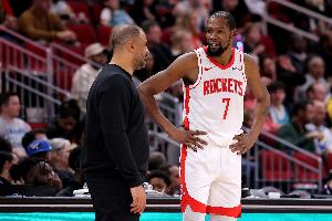 体育资讯4月10日讯 NBA常规赛,火箭113-102战胜76人。赛后,火箭球星杜兰特接受了采访。