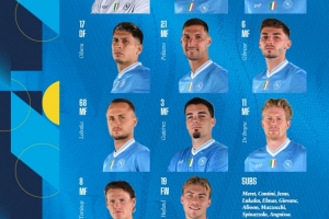 那不勒斯替补:梅雷特、孔蒂尼、小胡安、卢卡库、埃尔马斯、吉奥瓦尼、阿利松·桑托斯、马佐基、斯皮纳佐拉、安古伊萨