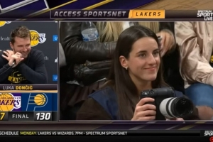 东契奇:“摄影师凯特琳·克拉克?那个WNBA球员?抱歉,我没看到她在拍照。”