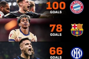 体育资讯4月5日讯 拜仁在本轮德甲让二追三,3-2逆转绝杀弗赖堡,本赛季28轮德甲已狂轰100球,同期领跑五大联赛。